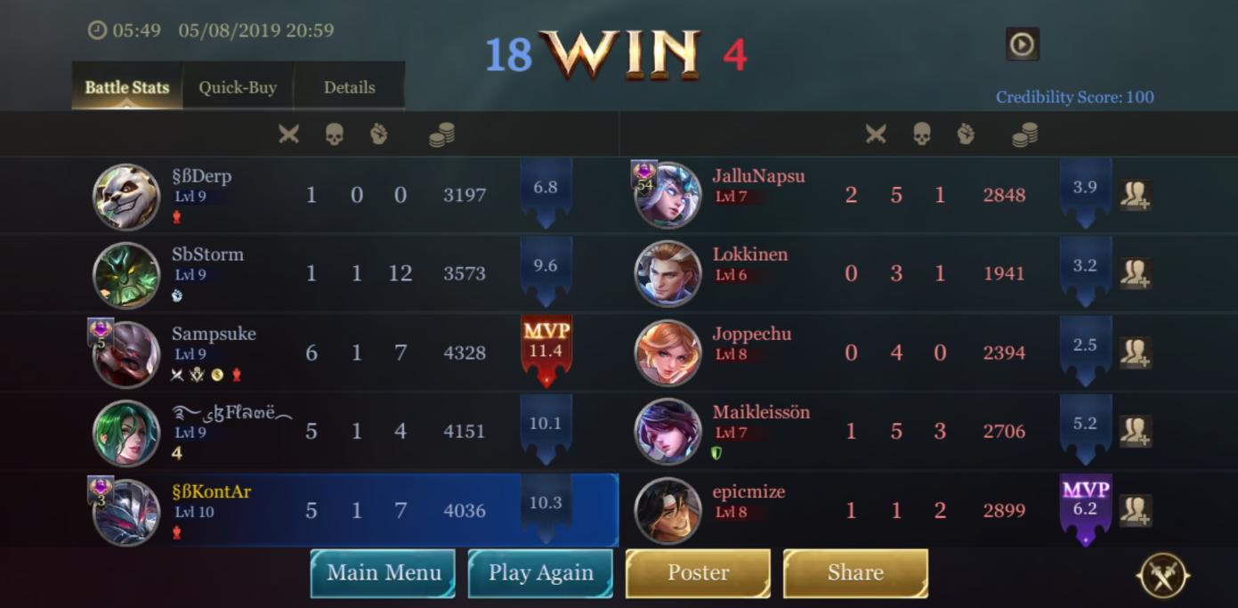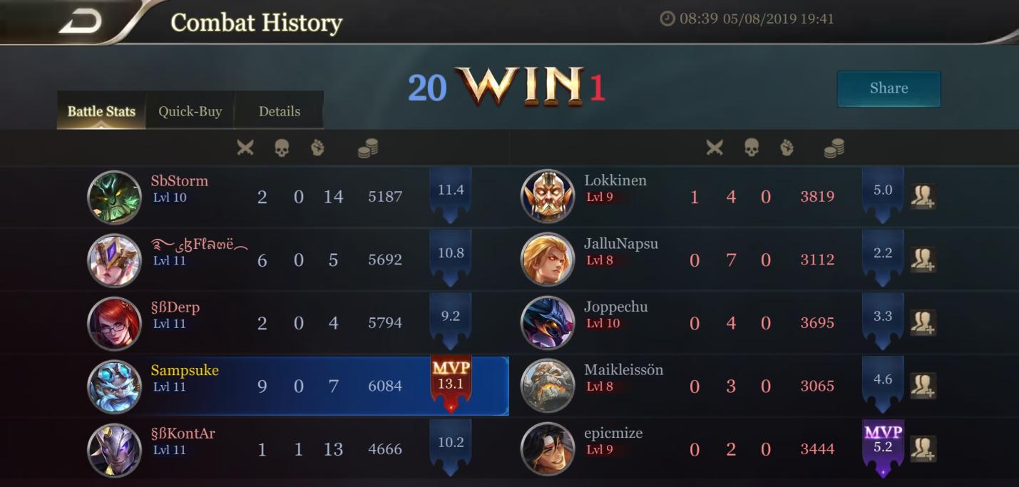 | Team | Jäsen | Kills | Assists | Deaths | MVPs |